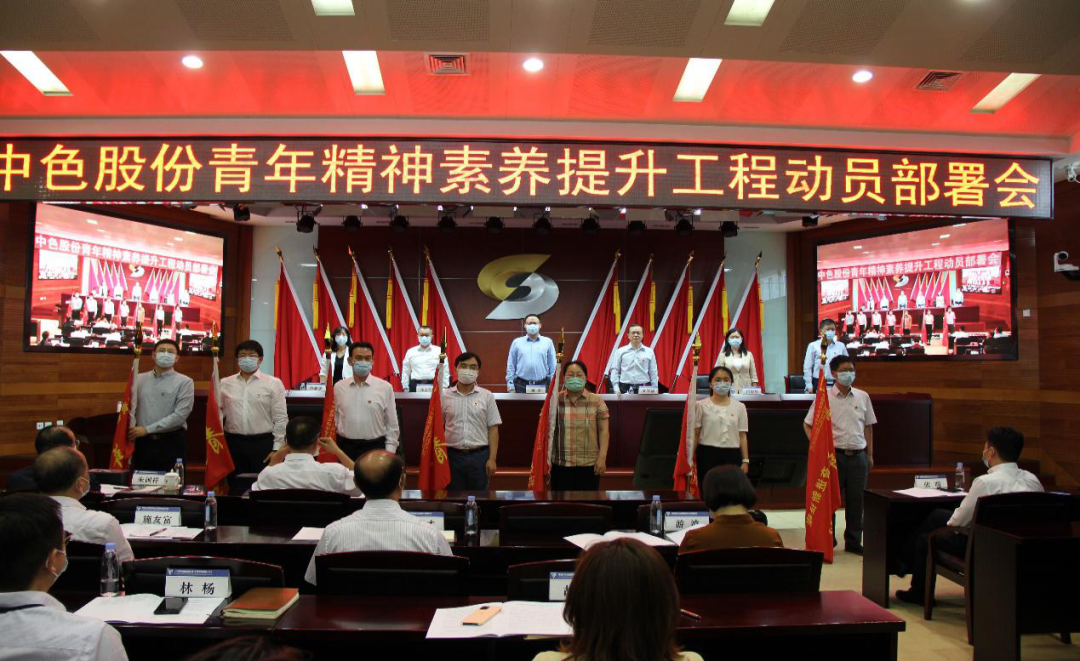 圖丨中色股份召開青年精神素養(yǎng)提升工程動(dòng)員部署會(huì),為7支青年突擊隊(duì)授旗,推動(dòng)青年崗位建功