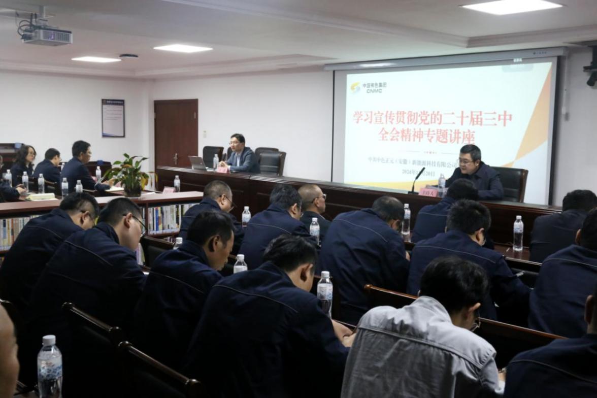 為深入學(xué)習(xí)宣傳貫徹黨的二十屆三中全會(huì)精神,準(zhǔn)確把握全會(huì)精神實(shí)質(zhì)和豐富內(nèi)涵,推動(dòng)各項(xiàng)貫徹落實(shí)工作走深走實(shí),11月20日,中國有色集團(tuán)出資企業(yè)中色正元(安徽)新能源科技有限公司(簡稱:中色正元)黨委邀請中共中央黨校(國家行政學(xué)院)法學(xué)博士、中共安徽省委黨校(安徽行政學(xué)院)副教授于德作專題輔導(dǎo)講座。